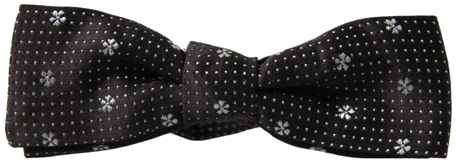 Dolce & Gabbana Black Patterned Silk Adjustable Men Neck Papillon Bow Tie