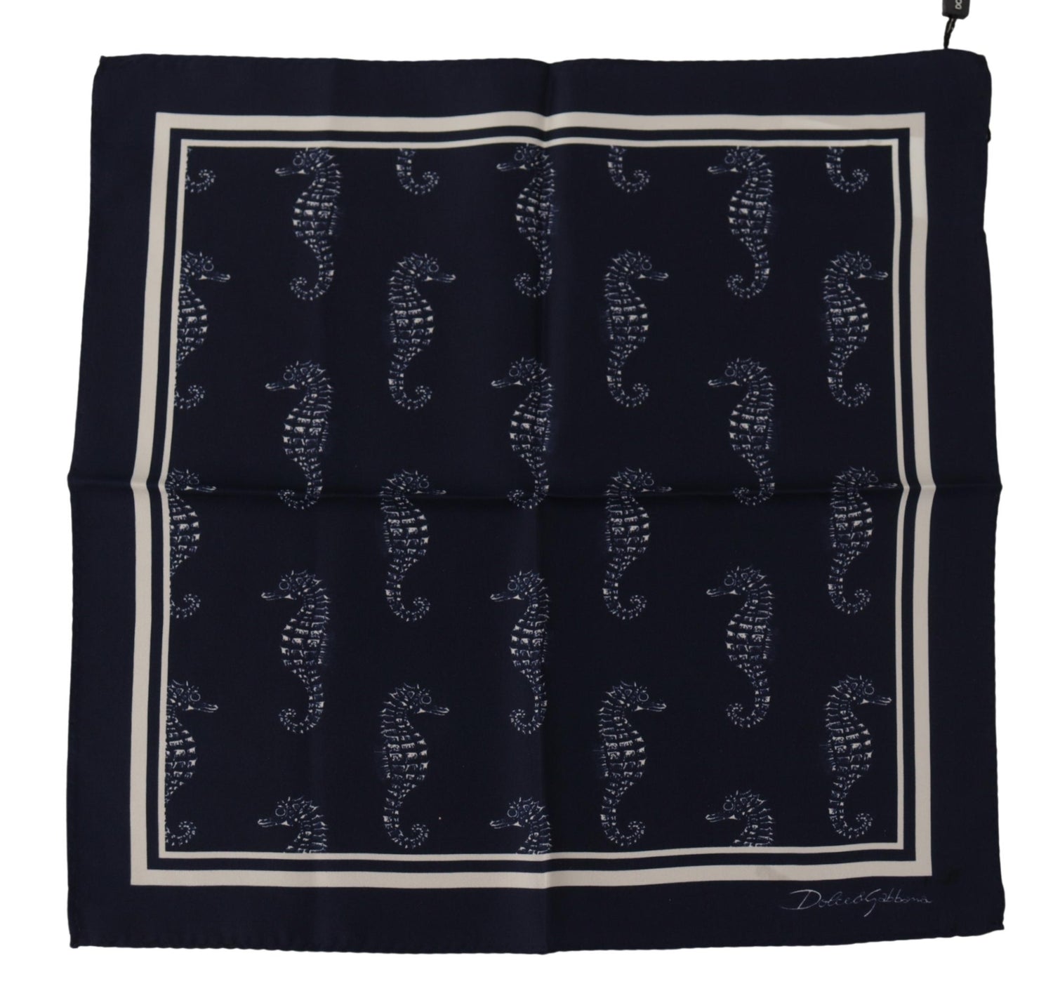 Dolce & Gabbana Blue Seahorse DG Printed Square Handkerchief Scarf
