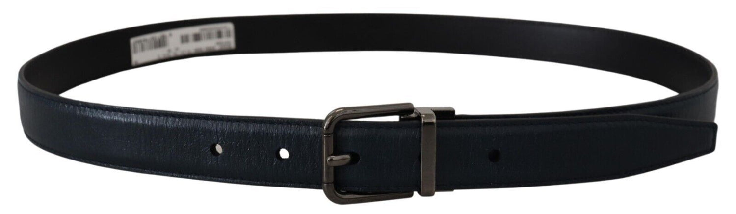 Dolce & Gabbana Blue Leather Silver Metal Buckle Vintage Belt