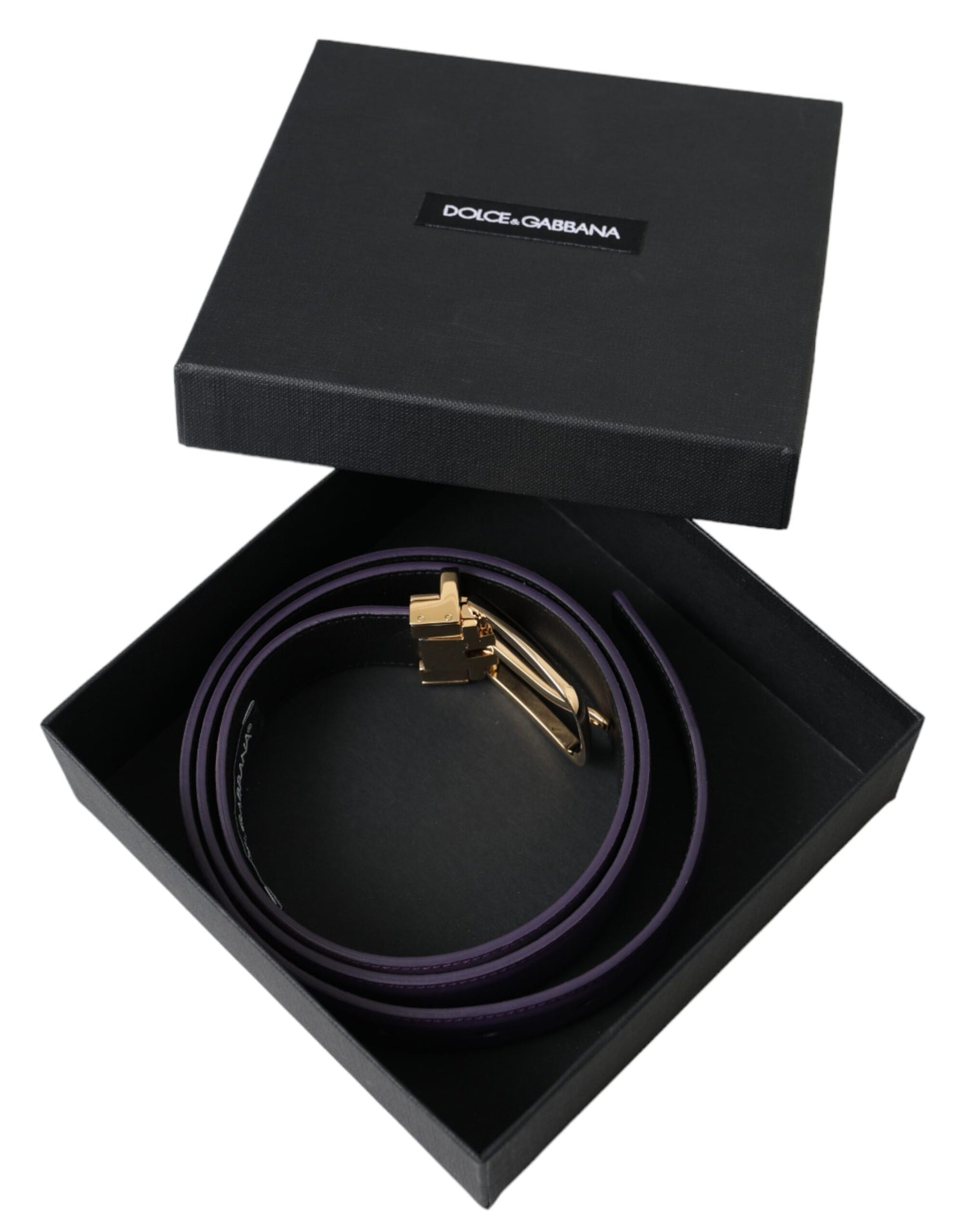 Dolce & Gabbana Purple Leather Gold Metal Buckle Belt Men