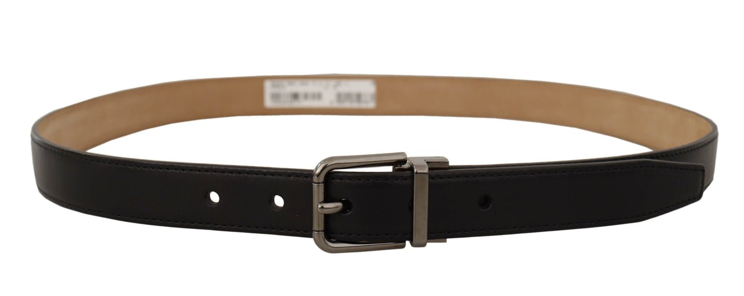 Dolce & Gabbana Black Calf Leather Logo Engraved Metal Buckle Belt