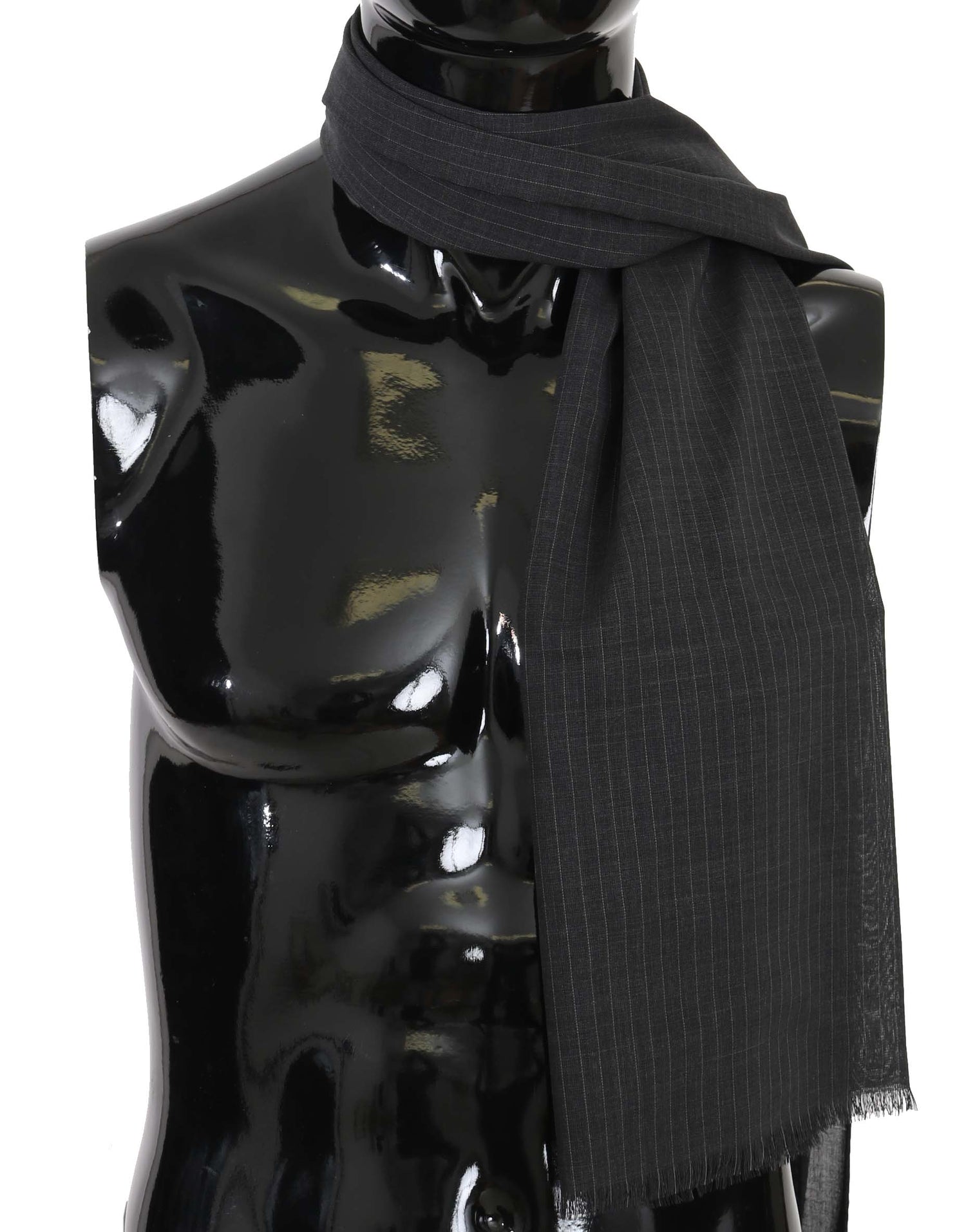 Dolce & Gabbana Gray 100% Wool Striped Pattern Wrap Scarf