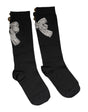 Dolce & Gabbana Black Knit Floral Crystal Embellishment Socks