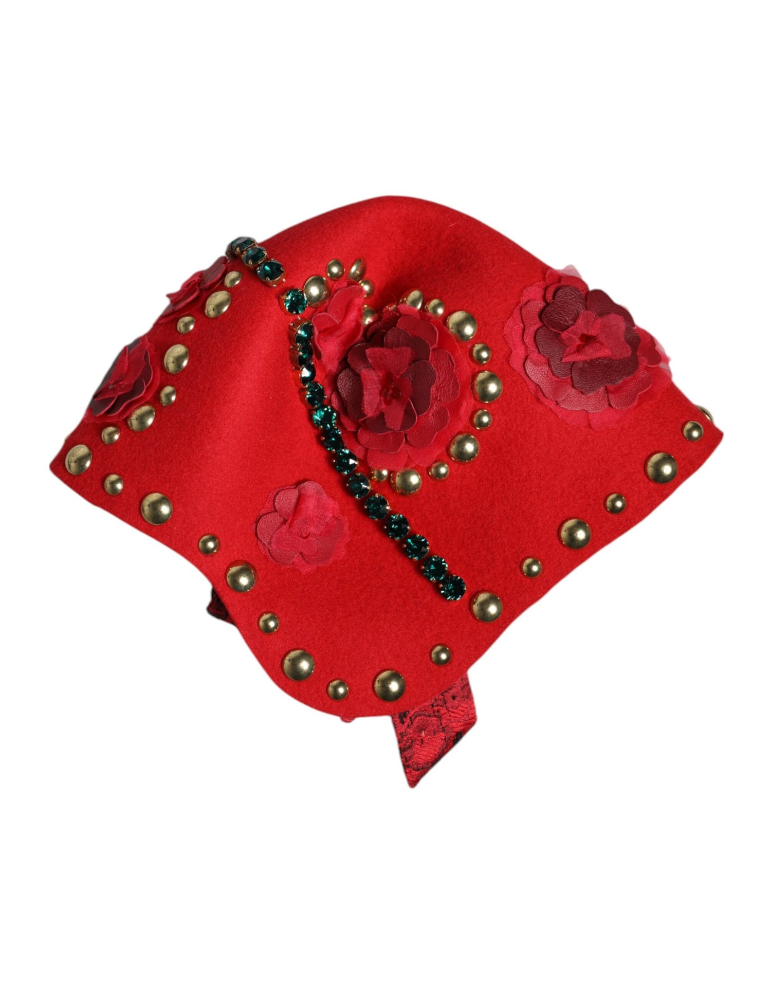 Dolce & Gabbana Red Crystal Gold Roses Brooch Embellished Hat