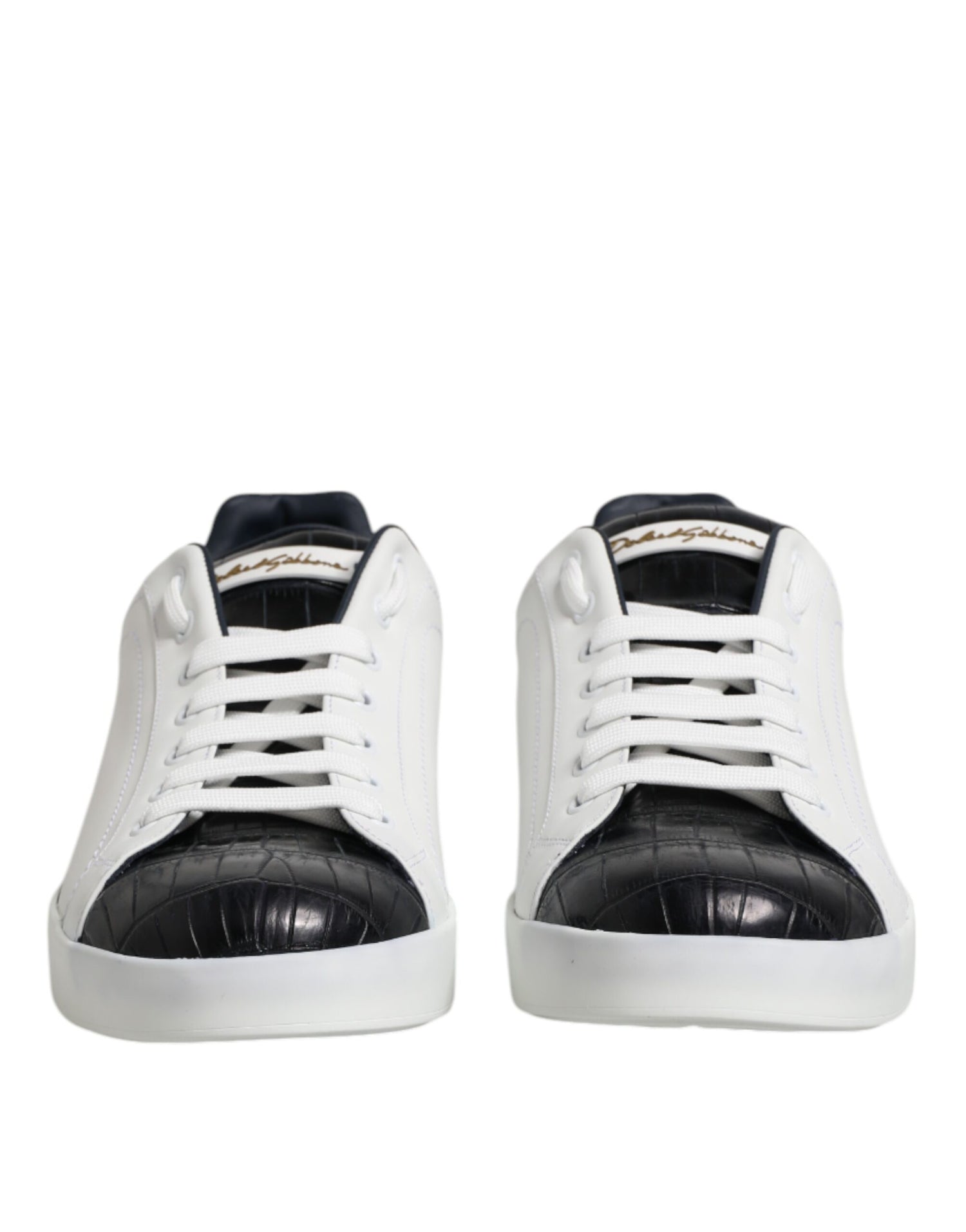 Dolce & Gabbana White Black Leather Portofino Sneaker Shoes