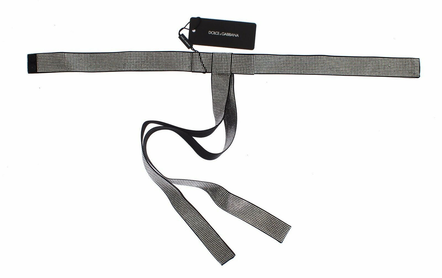 Dolce & Gabbana Black Silk Clear Crystal Bow Waist Belt