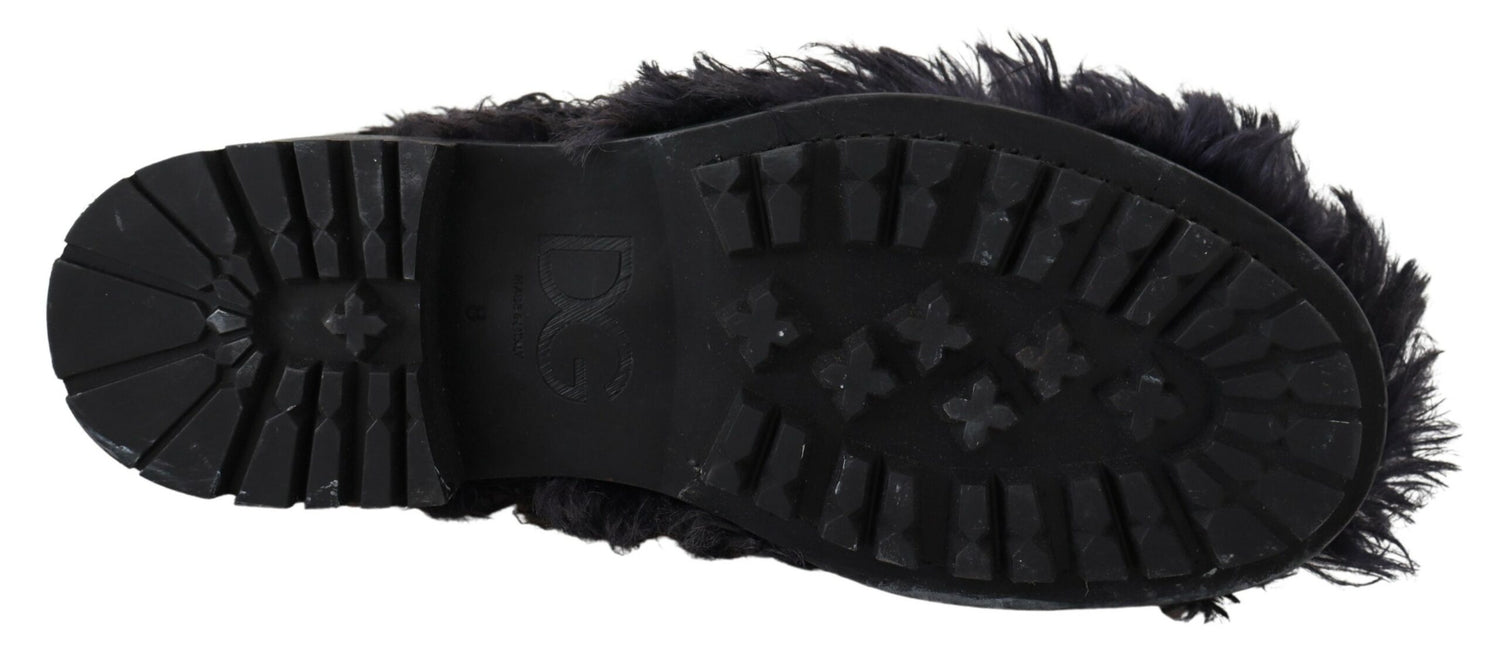 Dolce & Gabbana Black Leather Combat Shearling Boots Shoes