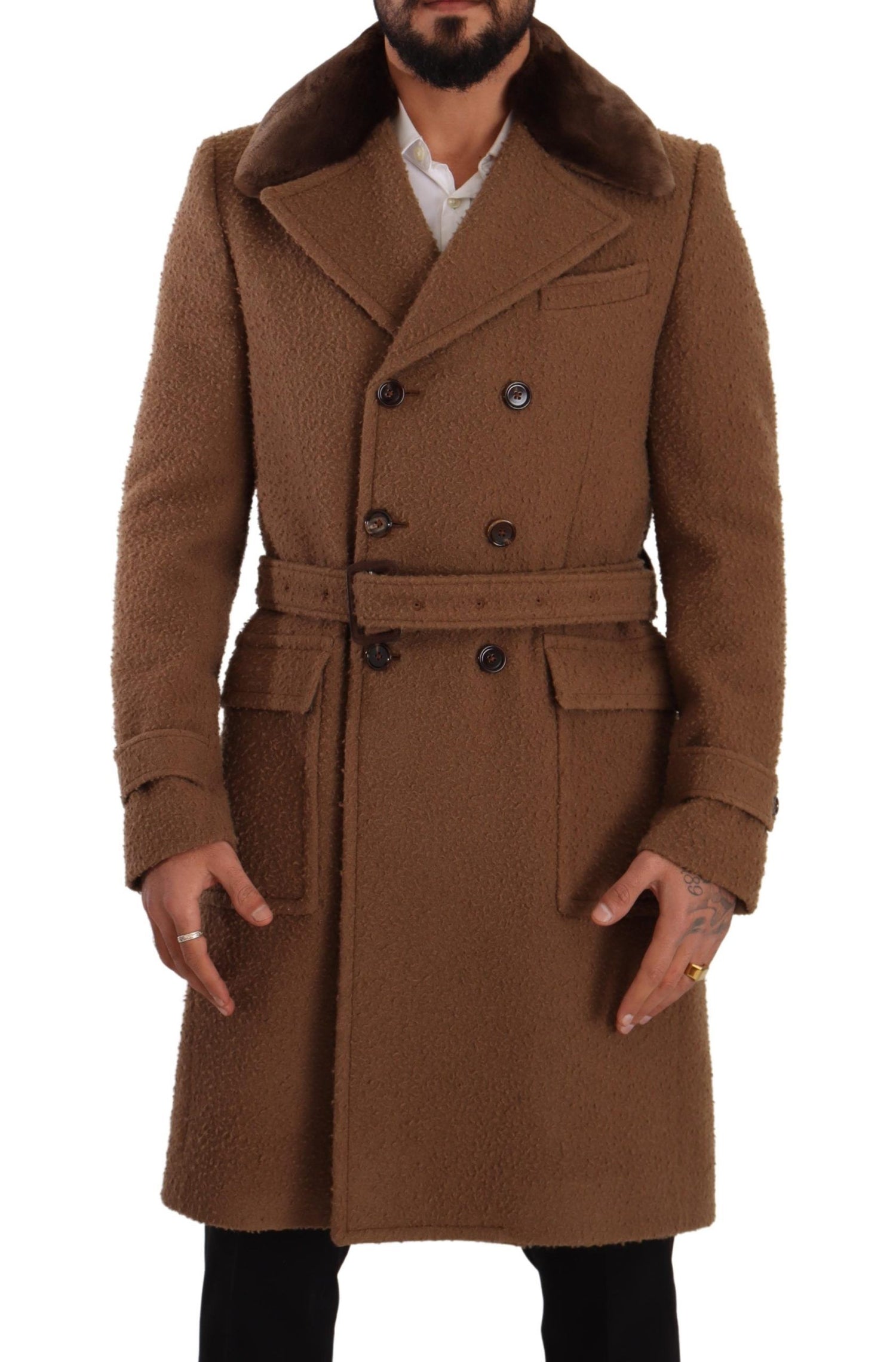 Dolce & Gabbana Brown Wool Long Double Breasted Overcoat Jacket - Men's
