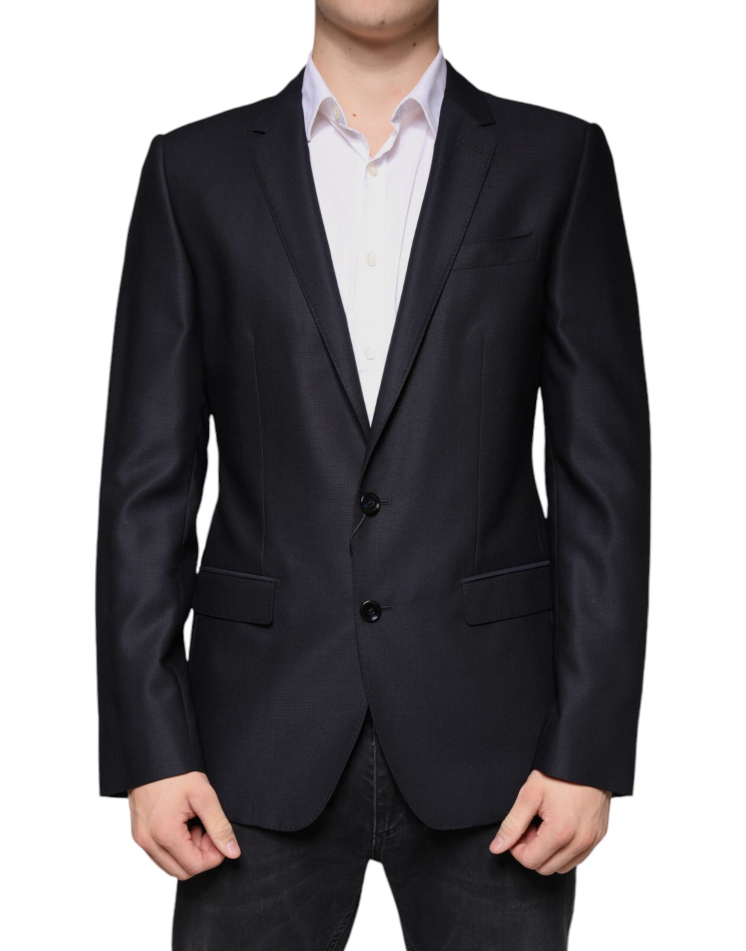 Dolce & Gabbana Dark Blue Wool Single Breasted Dress Coat Blazer