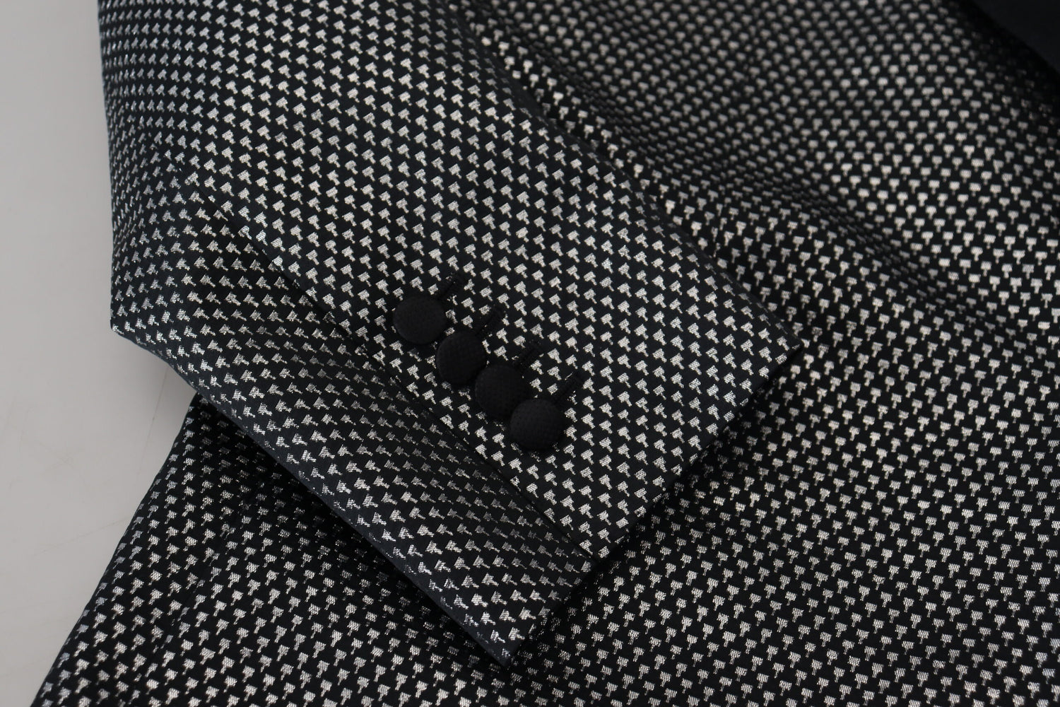 Dolce & Gabbana Black Silver Jacquard Slim Fit Jacket Blazer