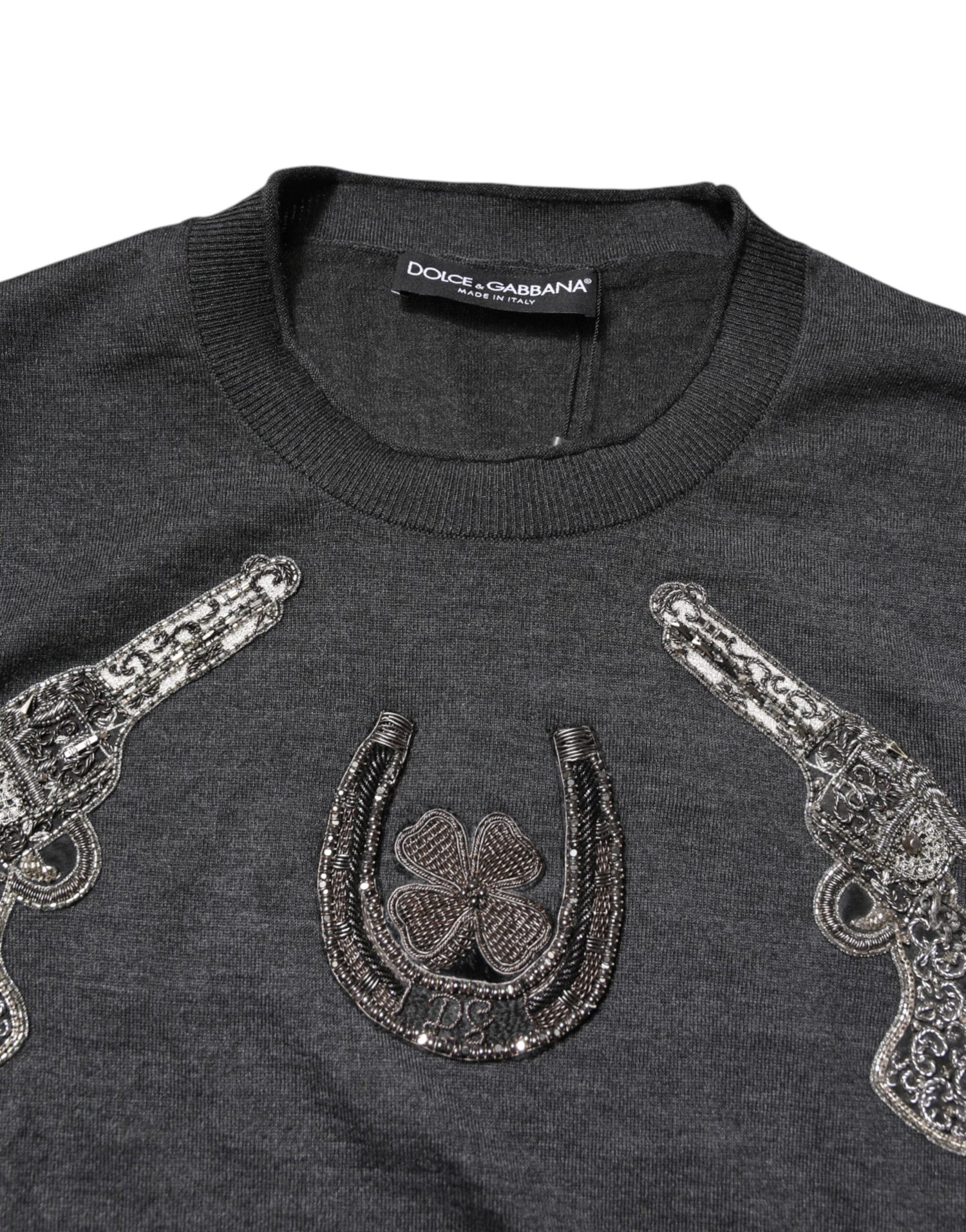 Dolce & Gabbana Gray Embroidery Knit Men Pullover Sweater