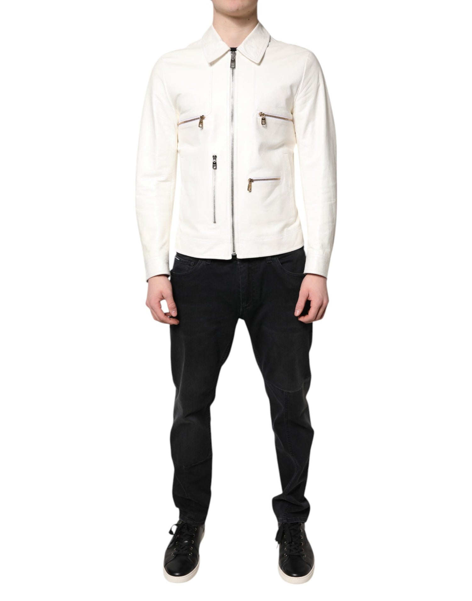 Dolce & Gabbana White Collared Full Zip Biker Coat Jacket