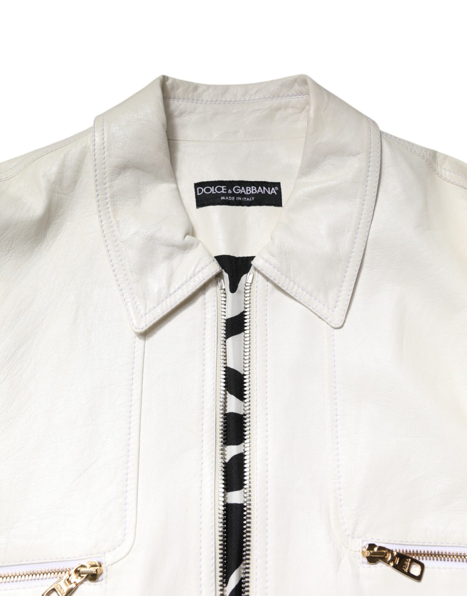 Dolce & Gabbana White Collared Full Zip Biker Coat Jacket - IT48 | M is backordered and will ship as soon as it is back in stock.