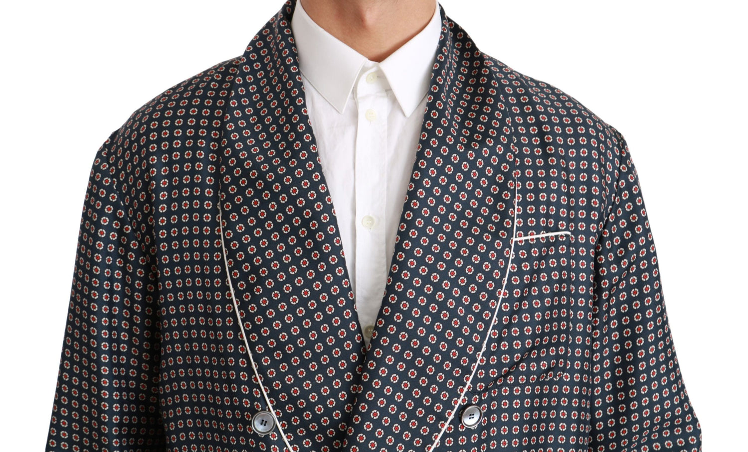 Dolce & Gabbana Navy Blue Patterned Double Breasted Coat Jacket - IT4 | L is backordered and will ship as soon as it is back in stock.