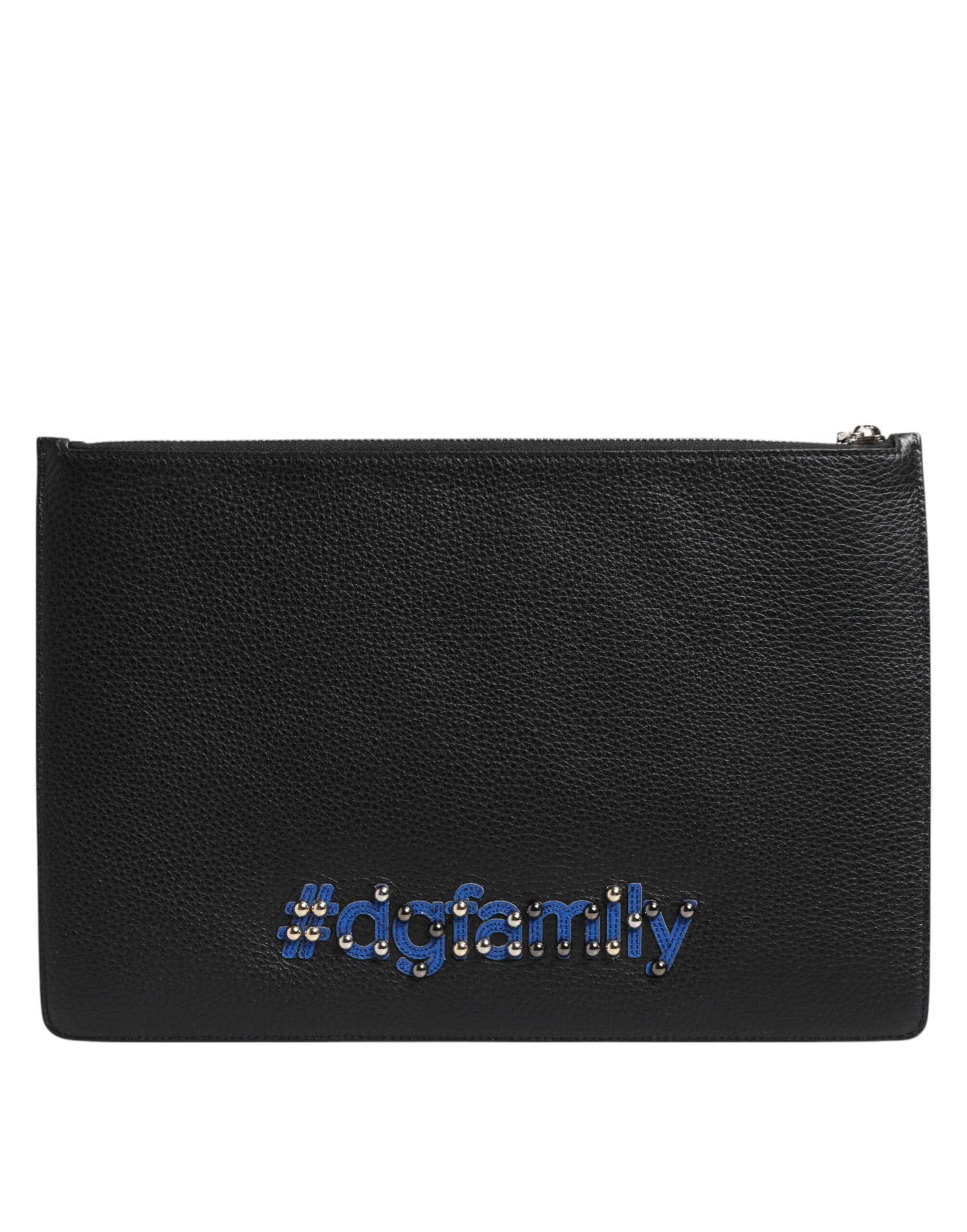 Dolce & Gabbana Black Leather #DGFAMILY Embellished Men Clutch Pouch Bag