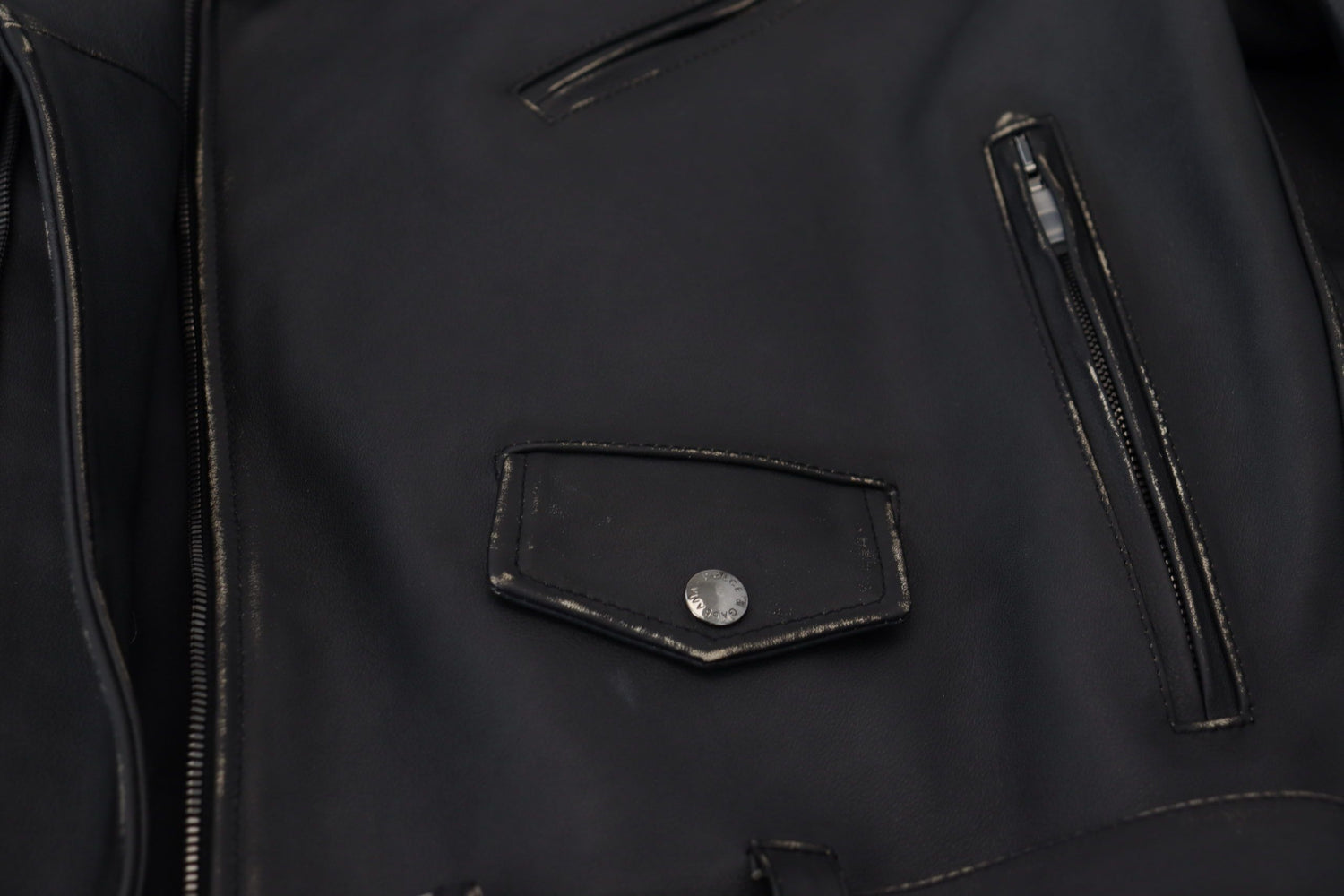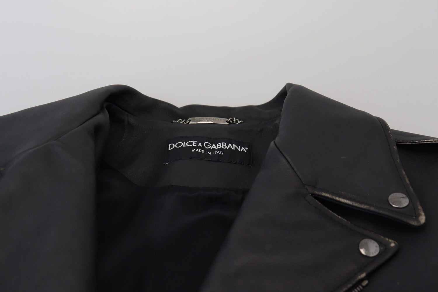 Dolce & Gabbana Black Leather Biker Coat Zipper Jacket