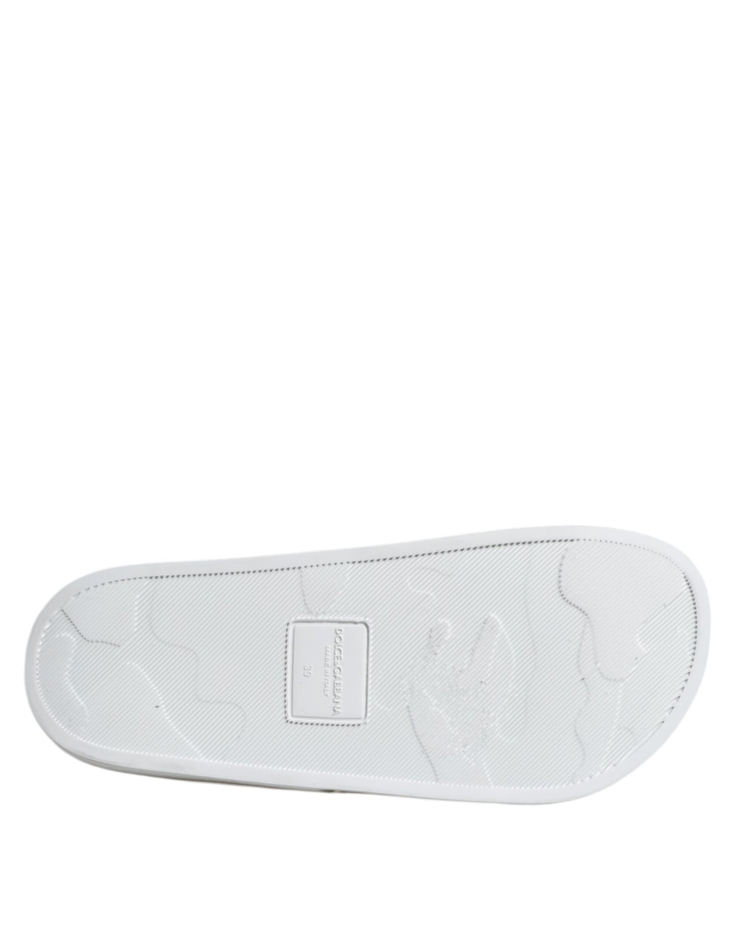 Dolce & Gabbana White Leather Slides Sandals Beachwear Shoes