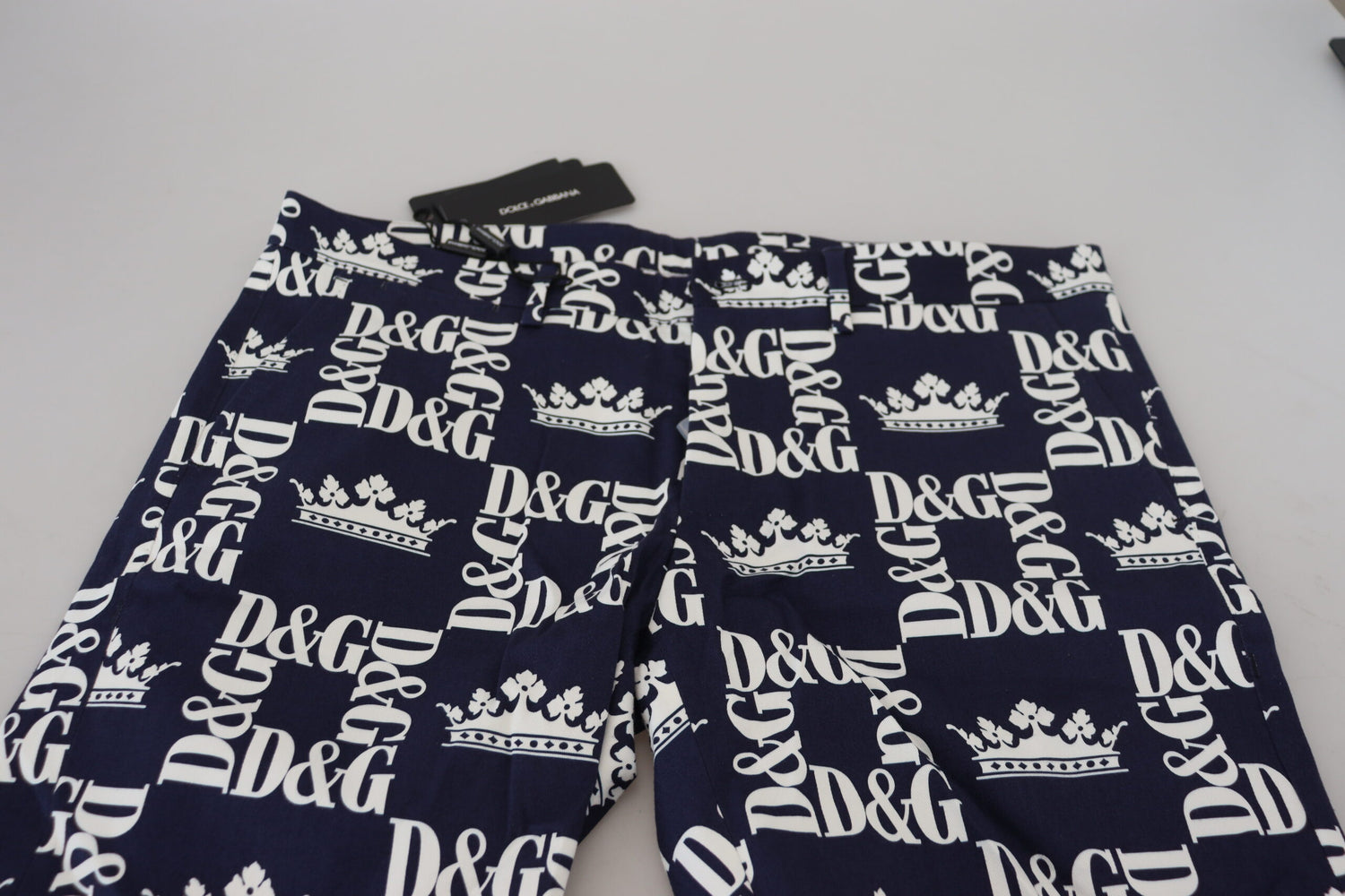 Dolce & Gabbana Blue Logo Print Cotton Chinos Shorts