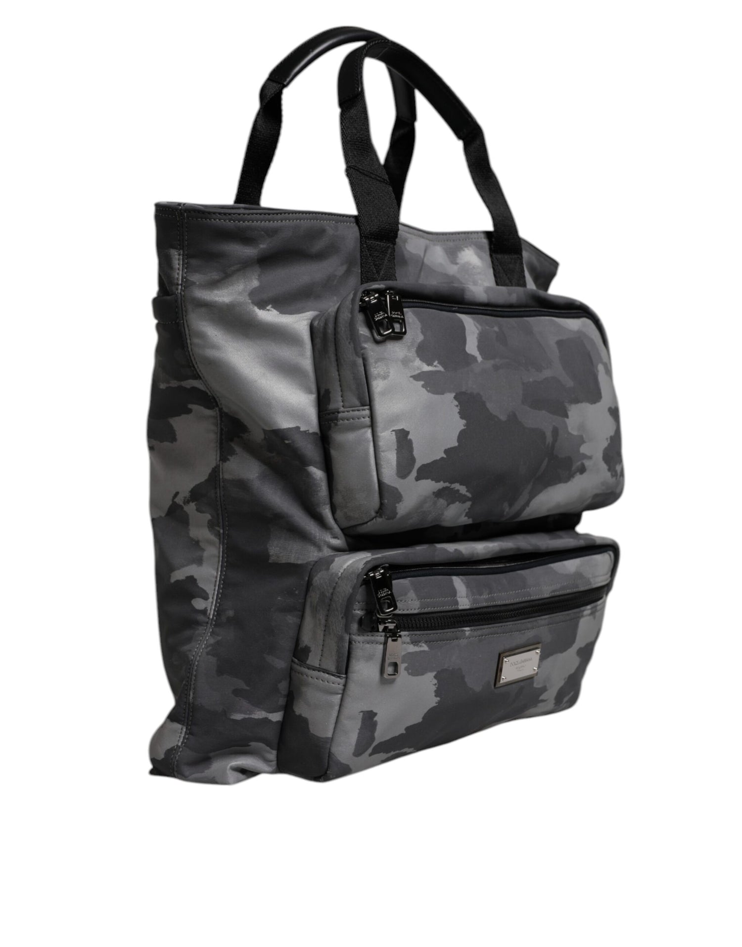 Gorgeous brand new, 100% Authentic Dolce & Gabbana tote bag featuring a modern gray camouflage pattern. This bag includes multiple zippered compartments for secure storage, dual carrying options with sturdy handles and long shoulder straps, and a durable water-resistant material.