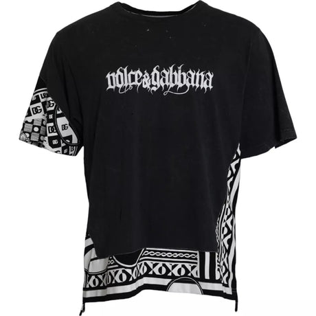Dolce & Gabbana Black Graphic Printed Cotton Short Sleeves T-shirt