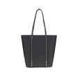 Valentino Garavani’s Rockstud Tote Bag embodies the brand’s bold elegance. Crafted in fine grained calfskin leather, it is embellished with the iconic platinum-finish studs that define its bold character. Featuring a zipper closure and protective feet at the base, it includes a removable internal pouch, perfect for organizing essentials with style and practicality. A sophisticated and distinctive accessory, ideal for any occasion.
