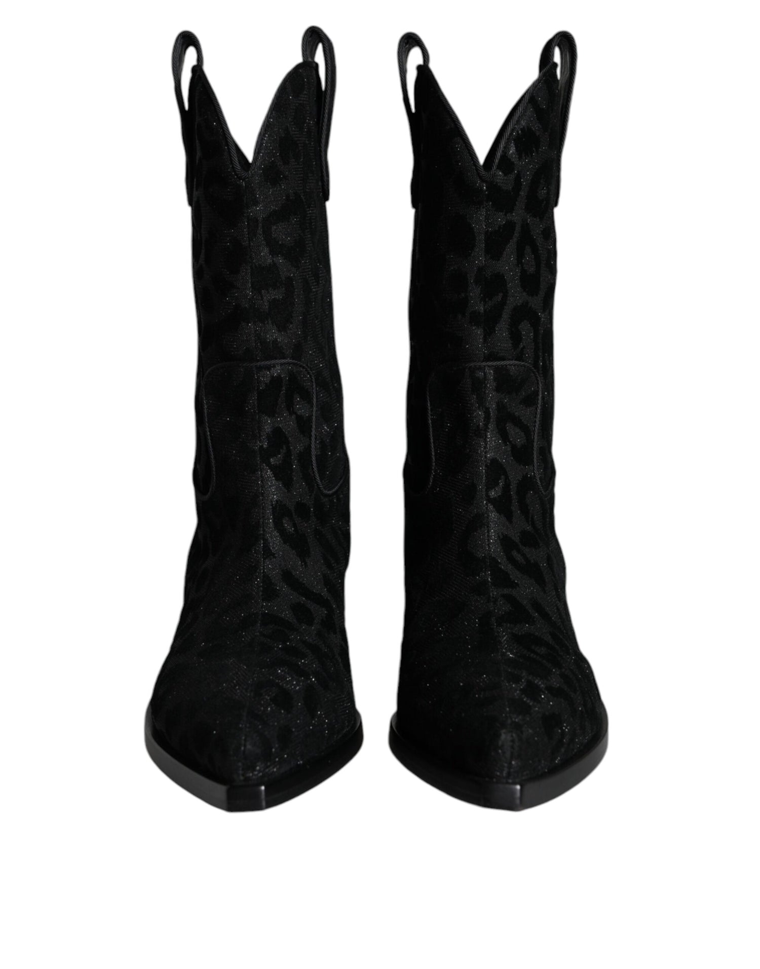 Dolce & Gabbana Black Gray Leopard Cowboy Boots Shoes