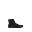 The leather ankle Boots lined with soft shearling, showcasing the refined, timeless aesthetic of The Row. The smooth black leather shapes a clean, minimalist silhouette, while the plush shearling interior provides warmth and comfort. A versatile and luxurious piece, designed to elevate both everyday outfits and more polished ensembles with understated elegance.