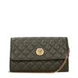 The product with MPN DBSI159S1A039121GM1V and code F83949 leather in green is a clutches designed by Versace. It has features like divider inner pocket, front logo, removable shoulder.