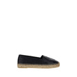 Lambskin Espadrilles by Saint Laurent, flat sole with rope detail, elongated toe, slip-on style, iconic brand monogram tone-on-tone press-stamped on front, contrasting logo insole.