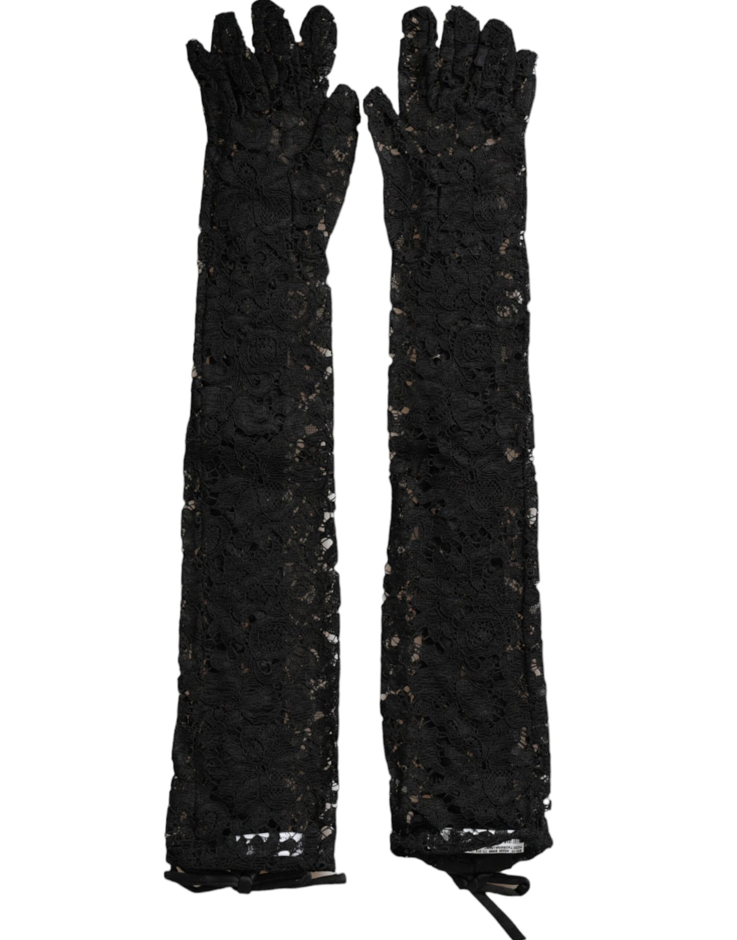 Dolce & Gabbana Black Taormina Lace Elbow Length Gloves