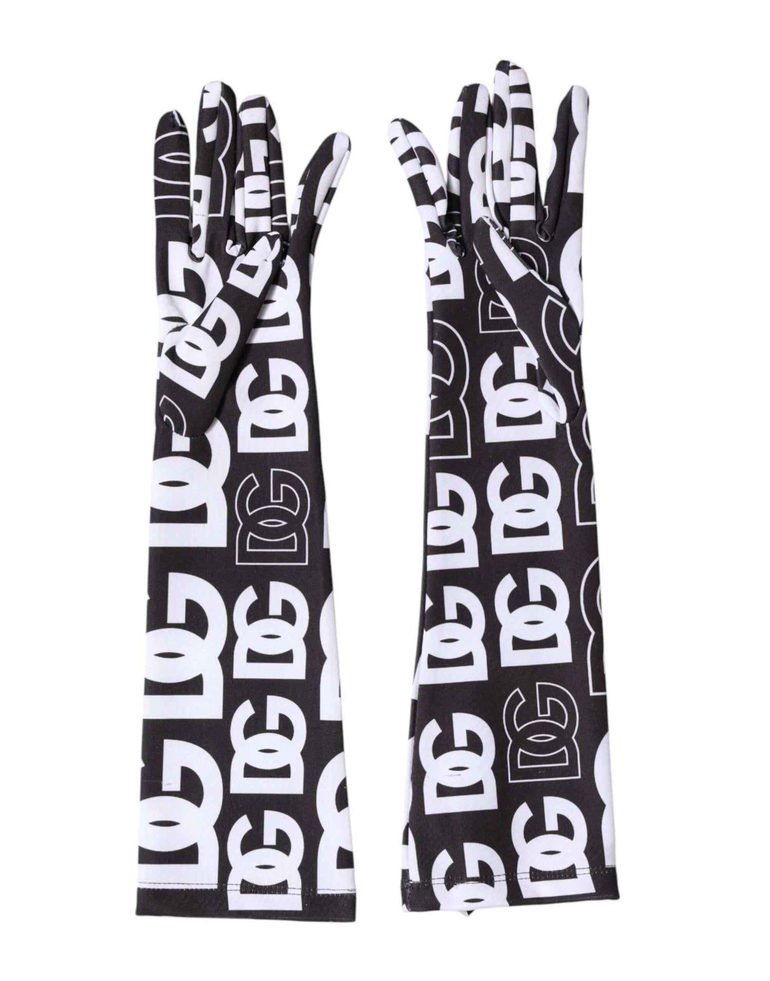 Dolce & Gabbana Black White DG Logo Elbow Length Mitten Gloves