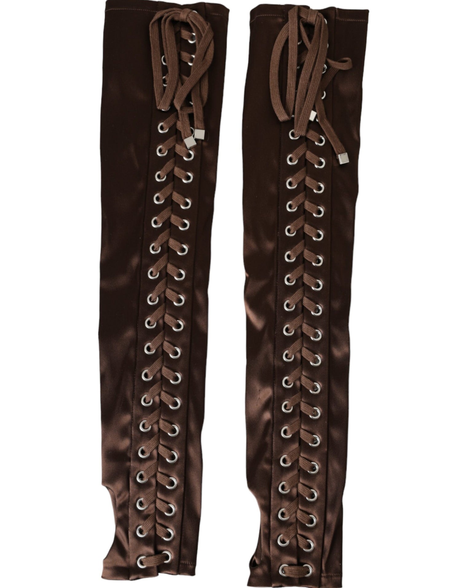 Dolce & Gabbana Brown Acetate Lace Up Fingerless Gloves