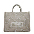 The product with MPN 10115621A109912KF4V and code F85561 fabric in beige is a handbags designed by Versace. It has features like front logo, adjustable shoulder, removable shoulder.