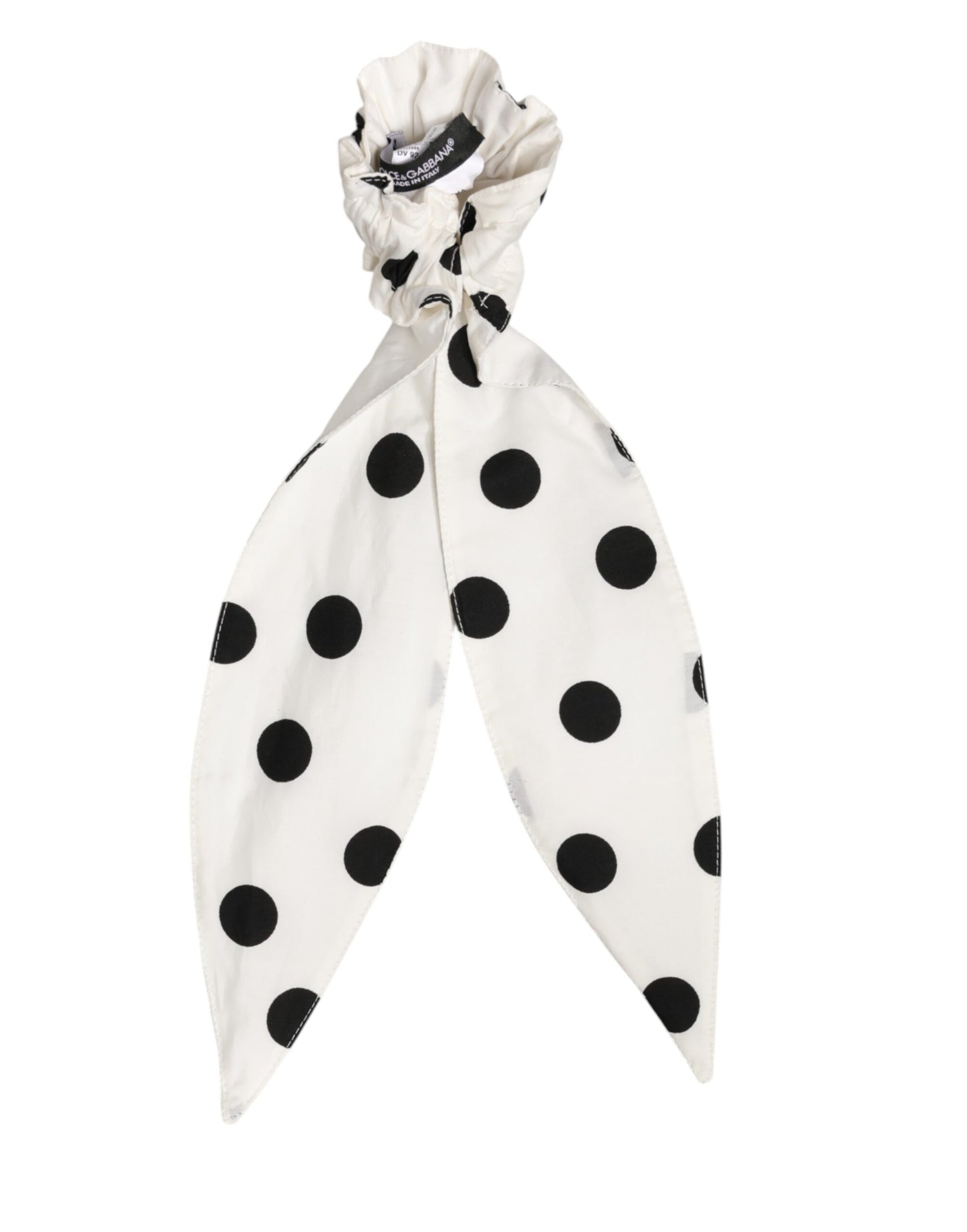Dolce & Gabbana Scrunchie White Cotton Polka Dot Scarf Tie Accessory Hair