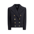 The double-breasted coat by Balmain combines sophistication with contemporary modernity. Crafted from fine wool, its streamlined silhouette with broad shoulders and wide lapels flatters the figure, while the engraved gold buttons, decorative stitching, and rear belt add distinctive details and a timeless urban style.
