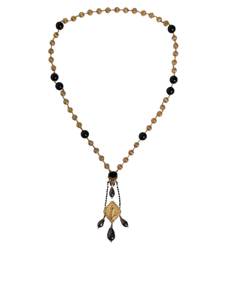 €716.54€1,281.50Unit price /UnavailableVery low stock (1 unit)Dolce & Gabbana Gold Chain Brass Black Beaded Rosary Style Necklace