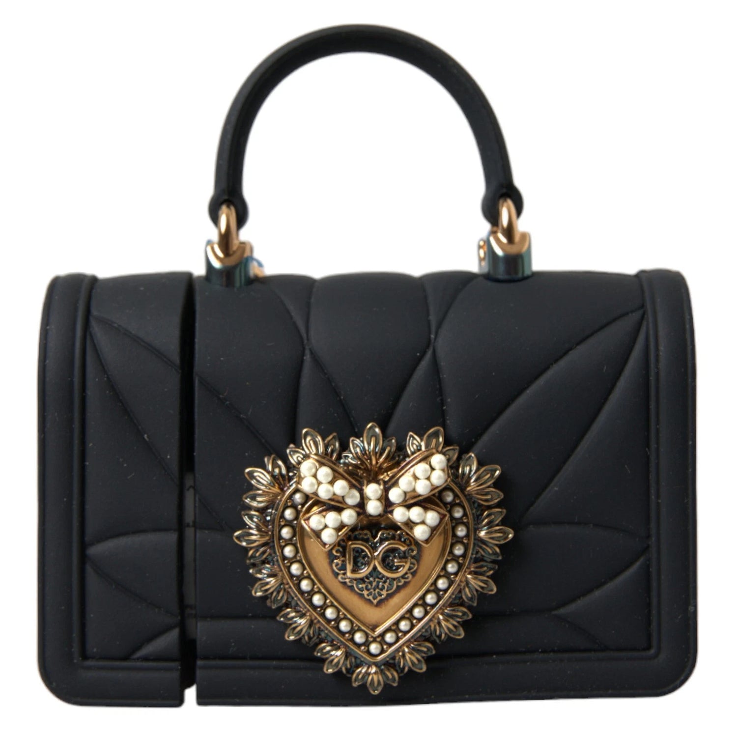 Dolce & Gabbana Case Black Silicone Devotion Heart Cover Hand Bag Airpod