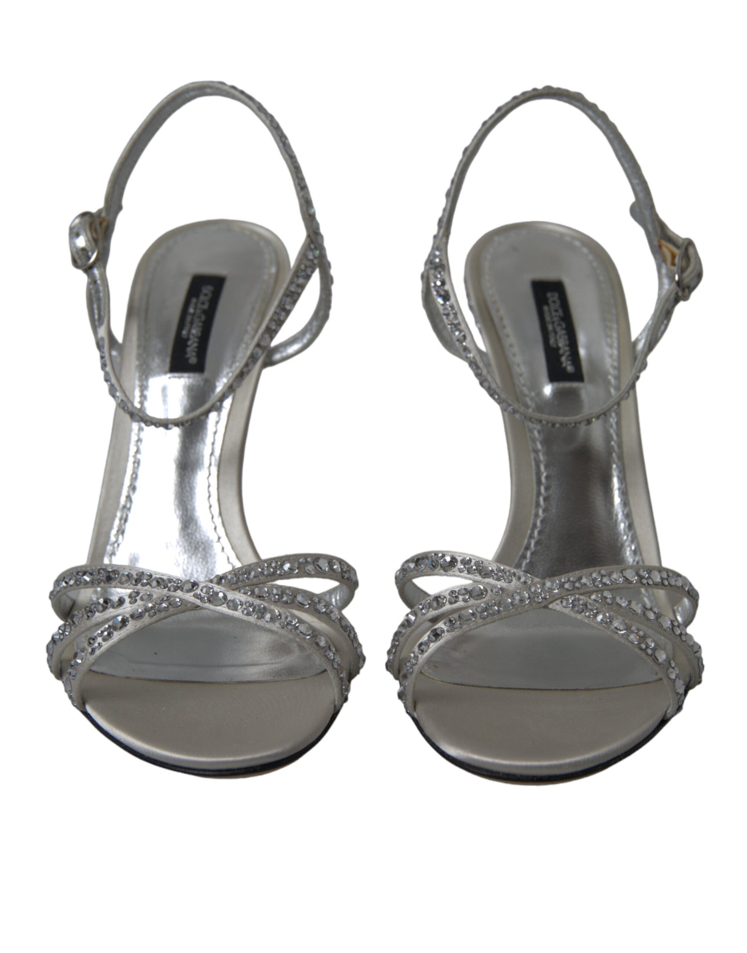 Dolce & Gabbana Silver Crystal Ankle Strap Sandals Shoes
