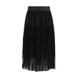 The Organza Skirt by Dolce & Gabbana features a gathered waist that enhances its volume and lightness. Applied fringes add dynamism and movement, transforming an essential piece into a statement of contemporary style. Made from a lightweight yet structured fabric, it reflects a harmonious balance between delicacy and expressive strength, perfectly aligned with the Maison’s feminine aesthetic.