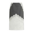 The midi wool and lace Skirt by Jil Sander embodies refined contemporary elegance. Crafted from wool canvas with lace inserts and an organza hem, it features a straight cut and a slightly high waist that subtly enhances the silhouette. The back zip fastening and strap detailing add a distinctive tailored touch, while the viscose lining ensures comfort and a flawless fit. A piece that combines precious textures with minimalist precision, true to Jil Sander’s aesthetic.