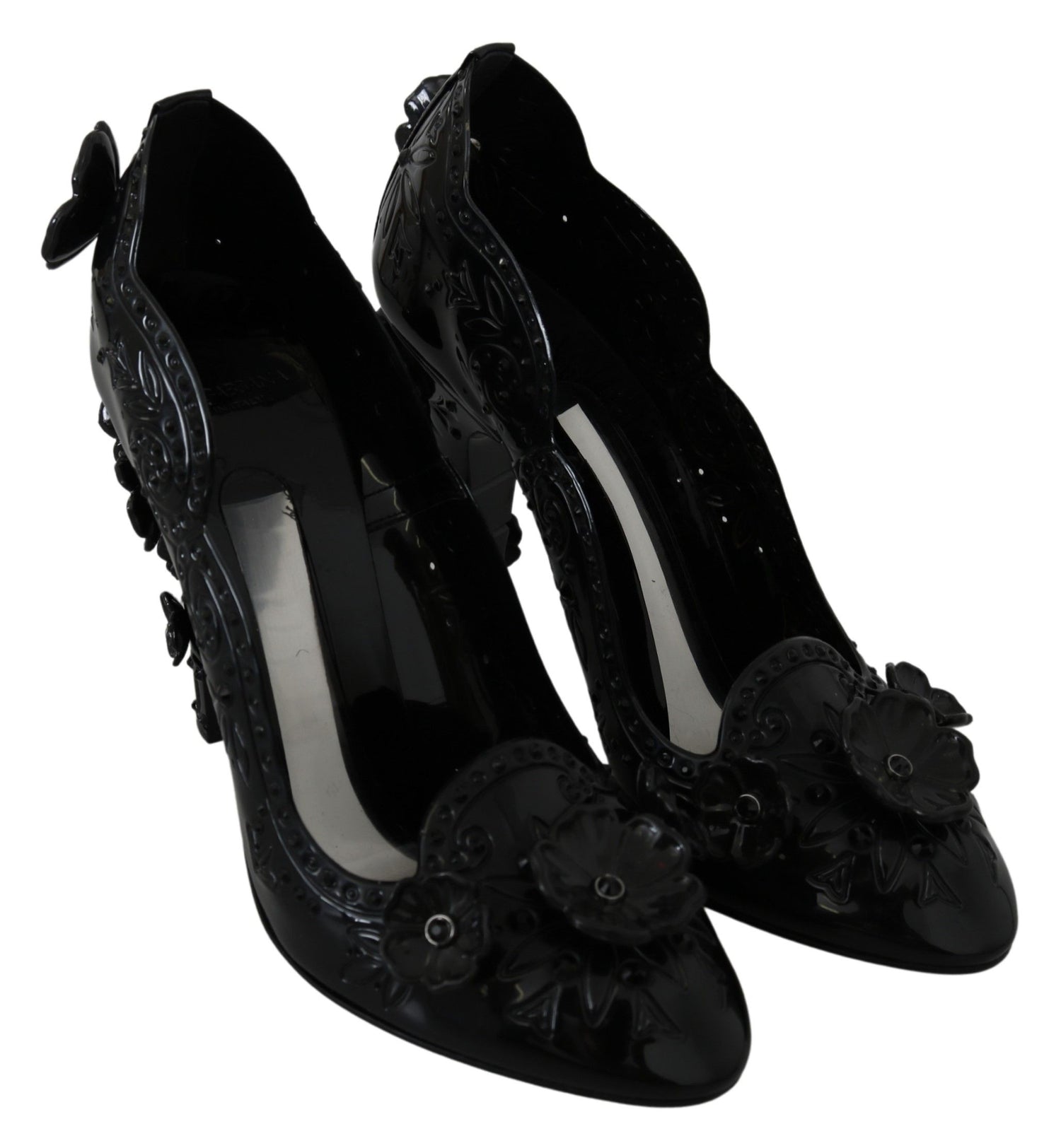 Dolce & Gabbana Black Floral Crystal CINDERELLA Heels Shoes