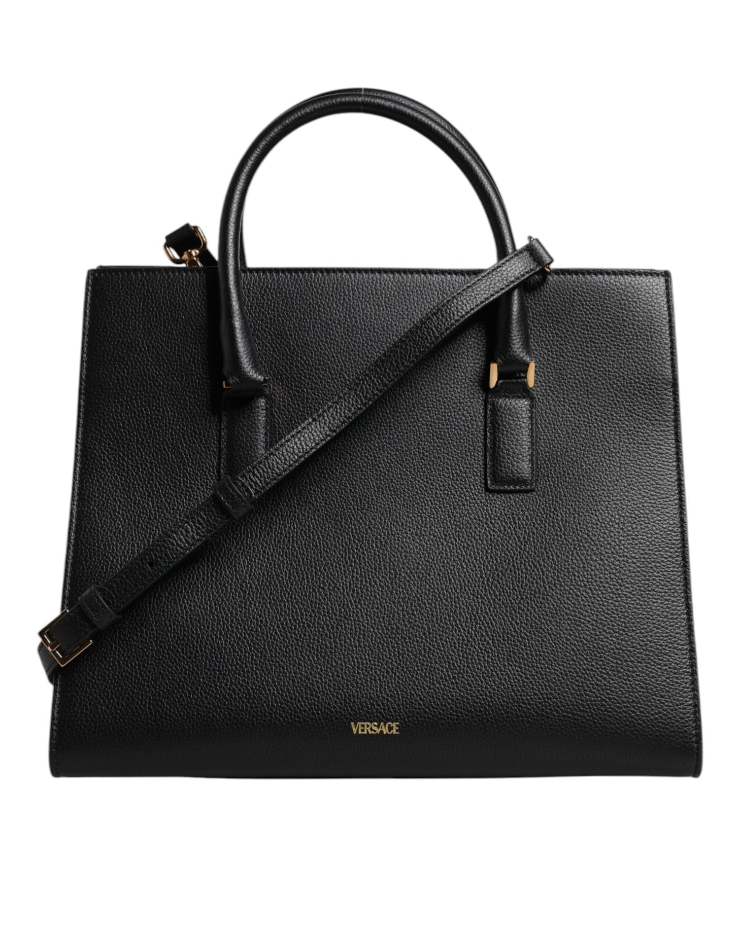 Versace Black Large Leather Top Handle Shoulder Crossbody Bag