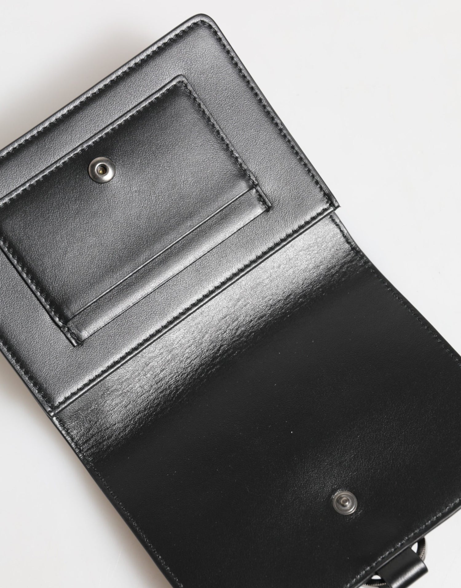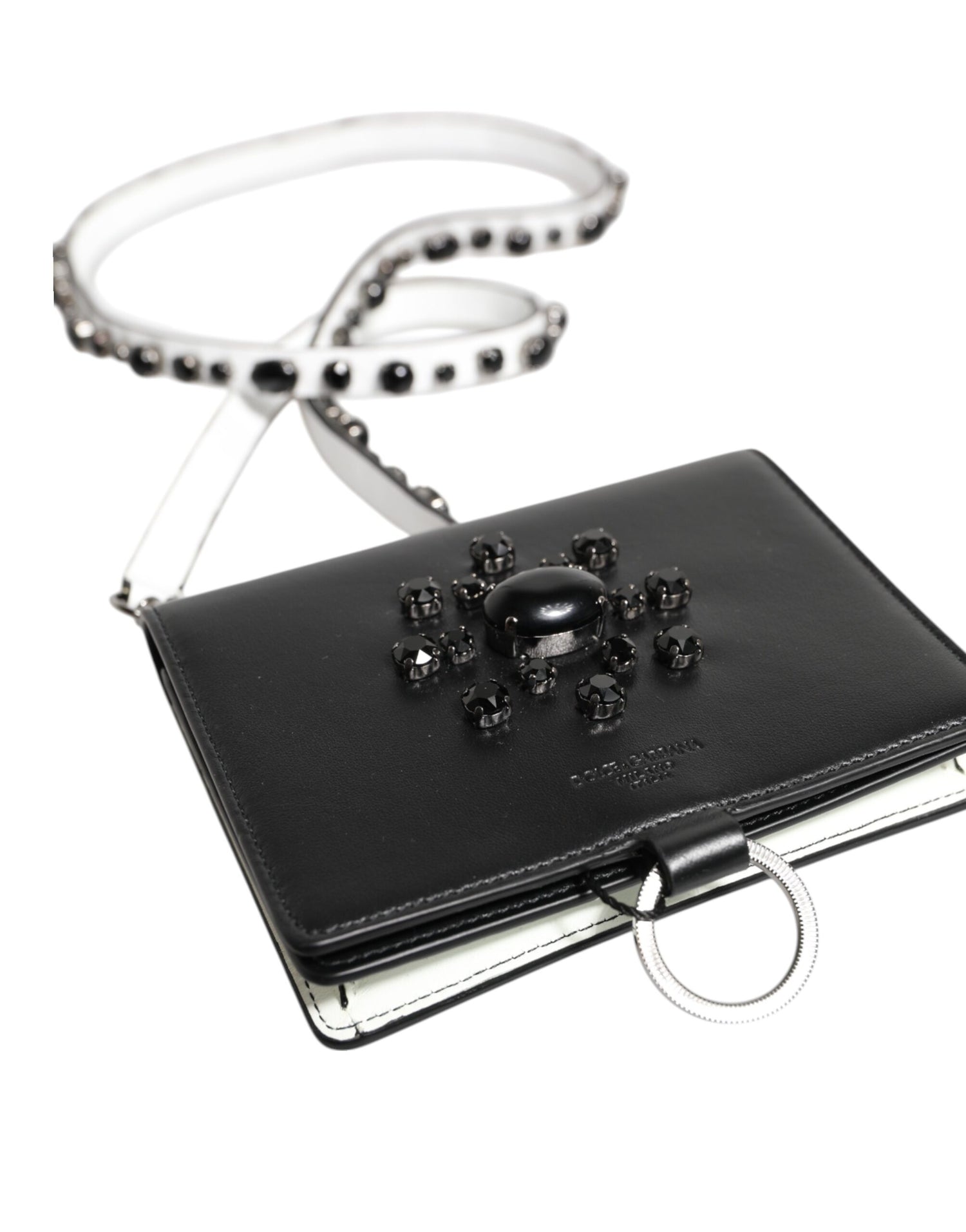 Gorgeous brand new with tags, 100% Authentic Dolce & Gabbana calf leather cardholder featuring crystal embellishment, snap-button fastening, internal card slots and detachable neck strap.