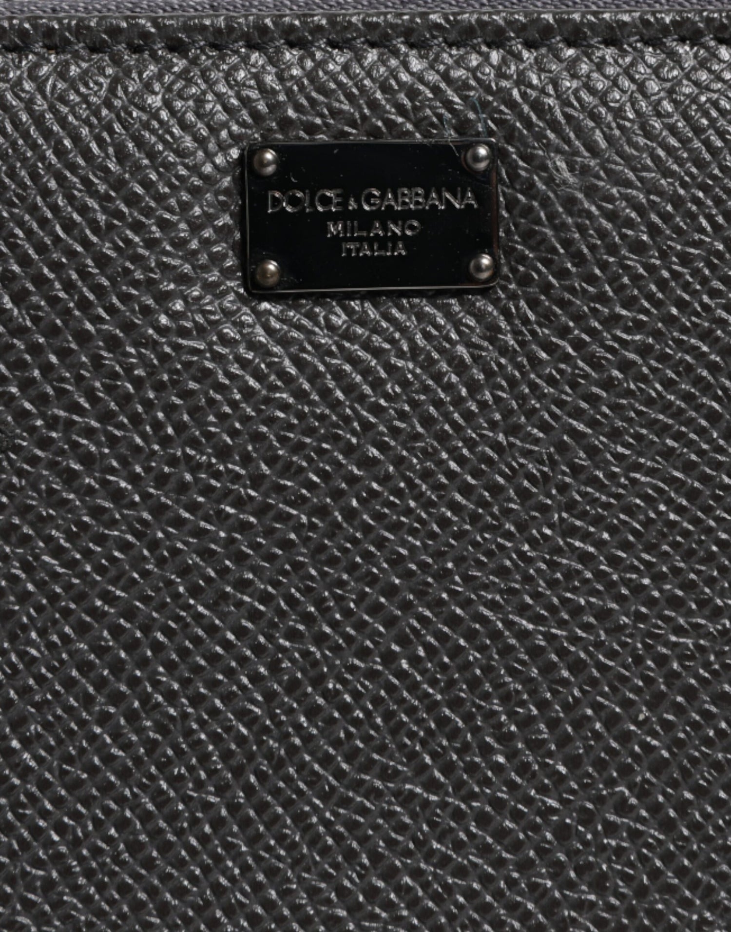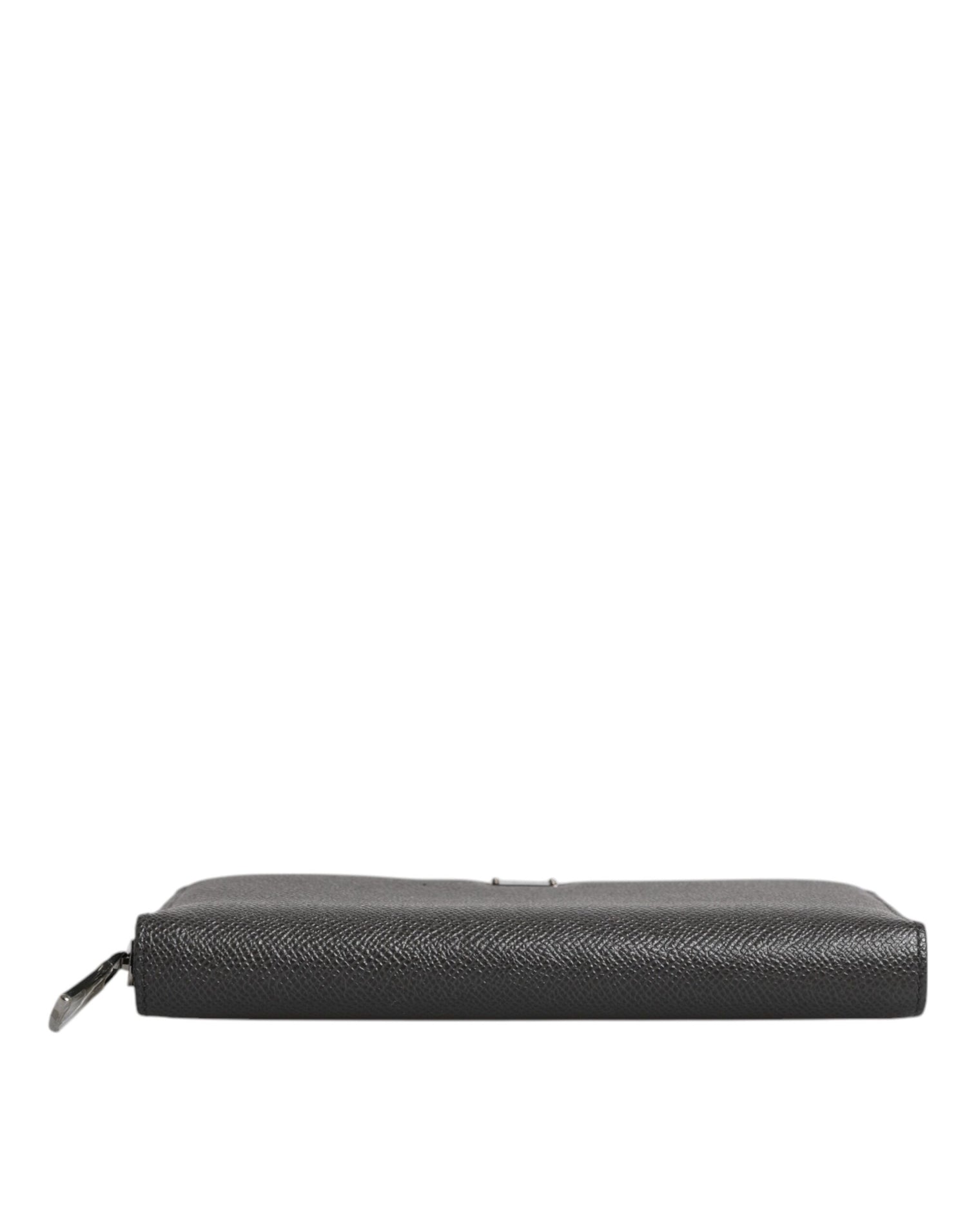 Dolce & Gabbana Dark Gray Leather DG Logo Zip Around Continental Wallet