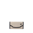 Beige Canvas and Loro Piana Leather Wallet. Covered snap button opening, two compartments, card holders, and internal zip pocket.