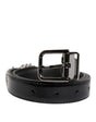 Dolce & Gabbana Black Embellished Metal Logo Buckle Belt