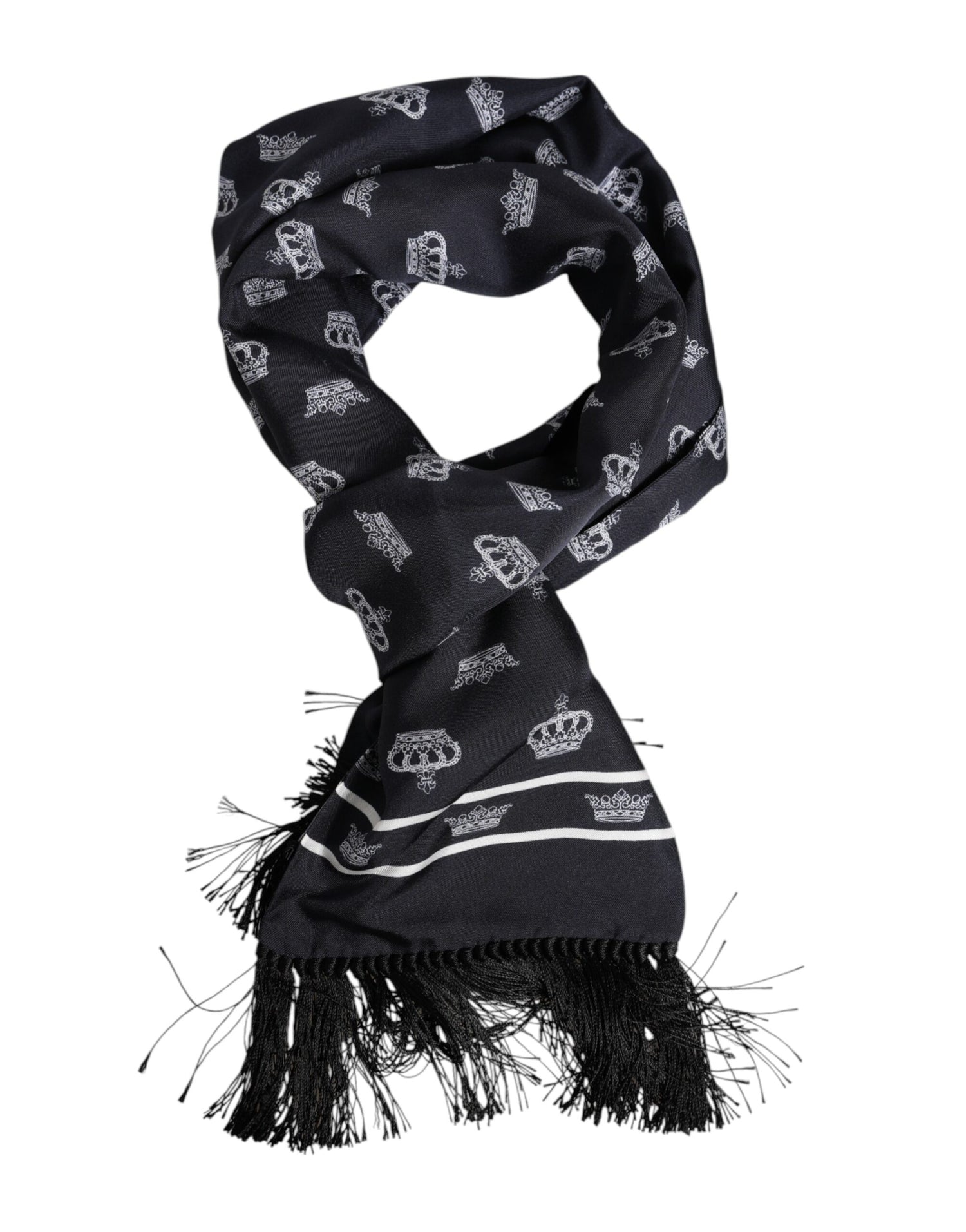 Dolce & Gabbana Black Silk Crown Fringes Men Foulard Scarf