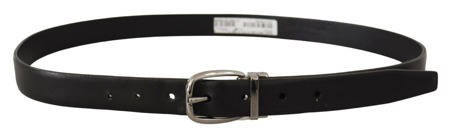 Dolce & Gabbana Black Leather Chrome Logo Metal Buckle Belt