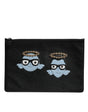 Dolce & Gabbana Black Leather #DGFAMILY Embellished Men Zip Pouch Bag