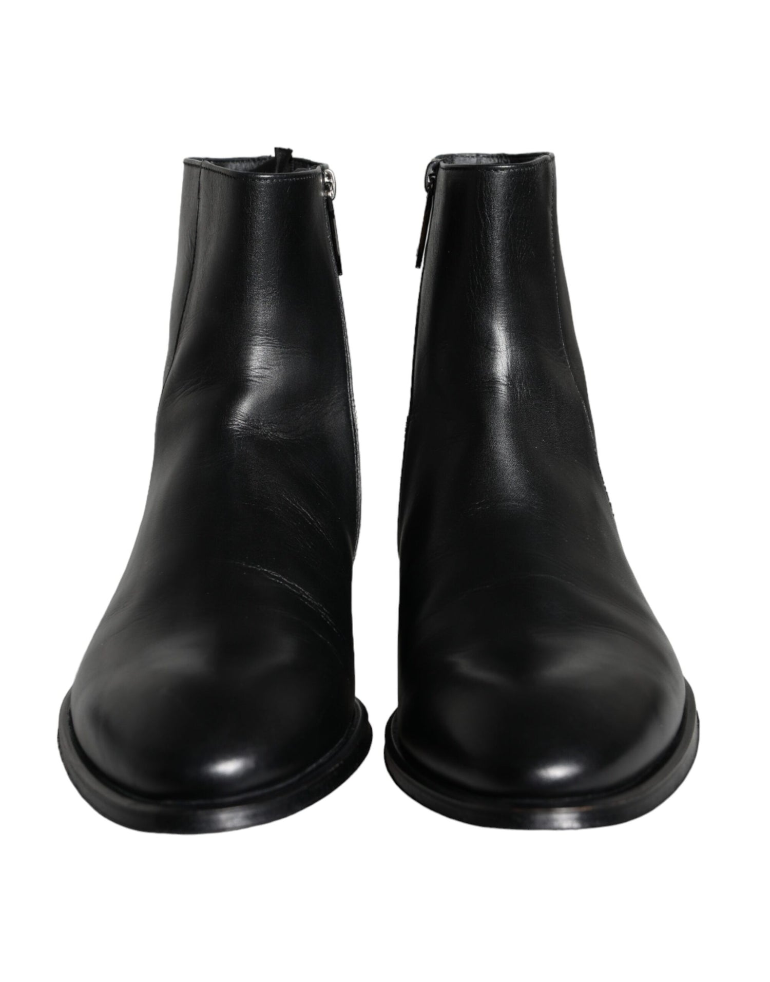 Dolce & Gabbana Black Calf Leather Men Ankle Boots Men Shoes